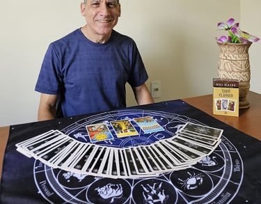 Seu trabalho vai além da leitura das cartas — é um processo de autoconhecimento e transformação, onde o Tarô se torna um canal para ouvir a voz da alma e transformar dúvidas em confiança e harmonia.